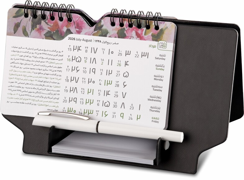 این تقویم با طراحی هوشمندانه، علاوهبر نمایش دقیق تاریخ، فضای اختصاصی برای یادداشتهای روزانه، کارهای مهم، قرار ملاقاتها و ایدهها در اختیار شما قرار میدهد. دیگر نیازی به کاغذهای پراکنده روی میز کار نیست؛ همه چیز همیشه جلوی چشم شماست.